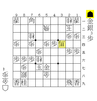 ▲2九飛 △4三金 ▲5九飛 △3五歩 ▲5七金寄 △3六歩