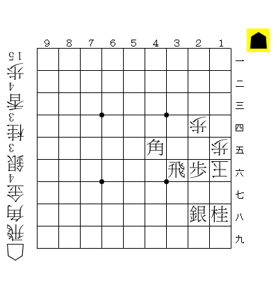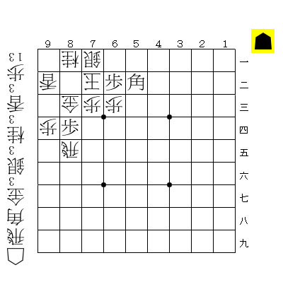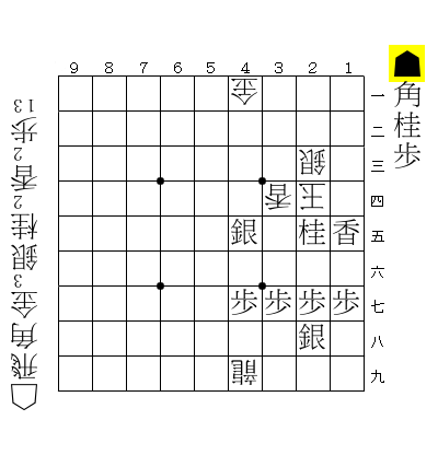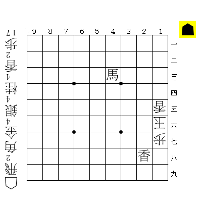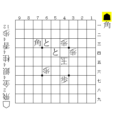 3五・3六・5四・5六、初期配置で玉が動ける場所が4か所、☗4六角成で☖5四玉の1か所になりました(n*´ω`*n)