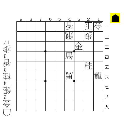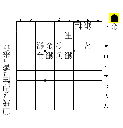 2025/08/14 19:48 #3091741竜-同玉ー63角ー31玉ー42とー同玉ー51銀ー31玉ー41角成ー22玉ー31銀 ー12玉ー22金まで