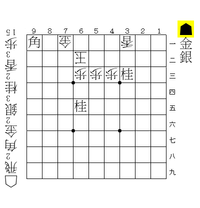 3三角打、2五玉、2六歩、同玉、1八桂打、2五玉、2六歩打、3五玉、3六銀 9手詰