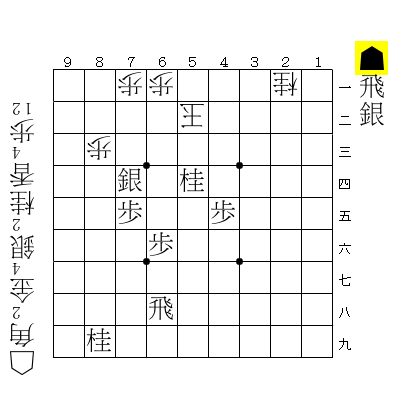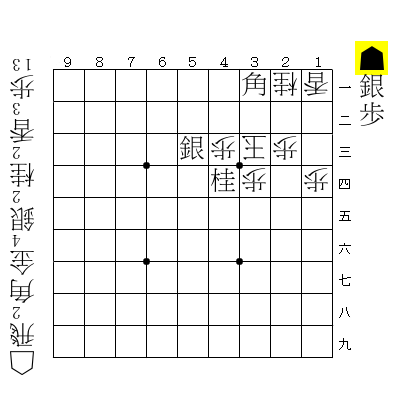 ホントは初期配置で☖9三玉として、初手☗8四銀と打って☖同玉の2手を入れたかったんですケド・・・