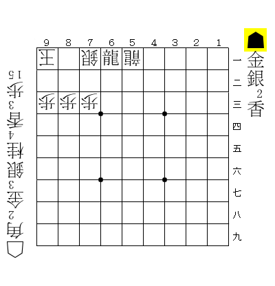 初期配置で☗7四銀を「金」にすれば成・不成の非限定は消えるんですケド、初手からの数手がまた変わってきてしまいますので、それはやめました(^▽^;)