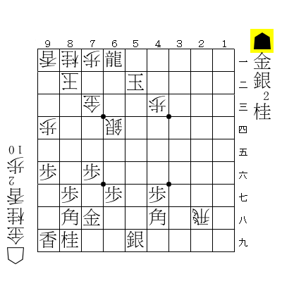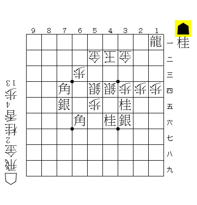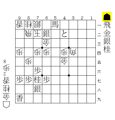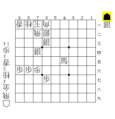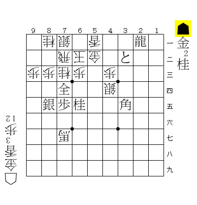 玉方 12香 21桂 22角 23歩 33玉 34歩 35金 53歩 65馬