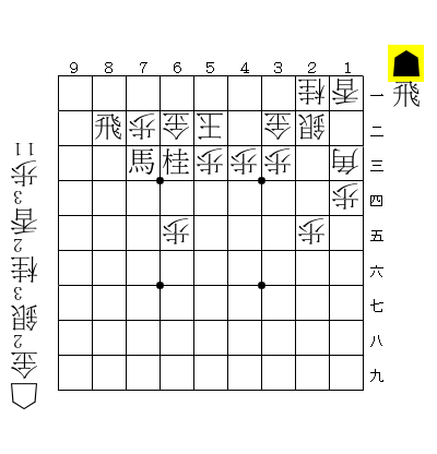 玉方 11香 13歩 21桂 24歩 31玉 33歩 43歩