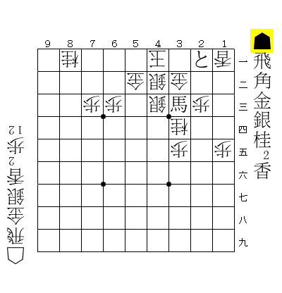 2局めの飛香車落ち上手7手目44角にとにかく25歩でした 76歩とし33桂