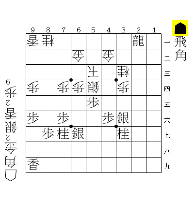 1局目飛車と角交換されては悪いですね飛車を助けようと角を打ち