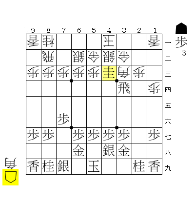 4三銀 3四歩 6四角だと後手は3七桂とするしかないので手番が後手になります。