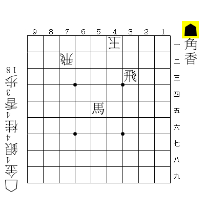 玉方 14歩 15飛 21桂 22玉 23歩 52歩 54角