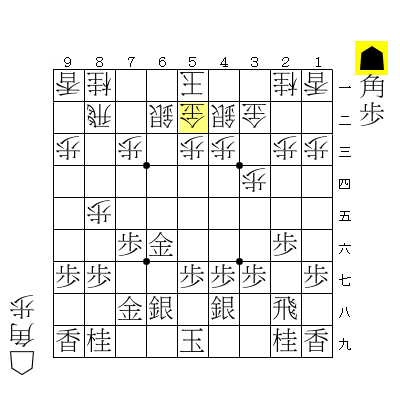このとき、両者とも持ち駒は「角・歩」・・・ただ、後手の金が6三地点まで引っ張り出されたカタチになっています♪☆