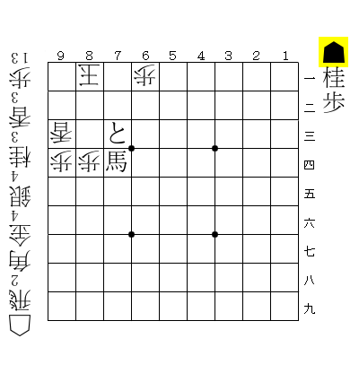 指した瞬間に先手負けです・・・ ☖3七角成で後手の勝ち(先手負けになります・・・)