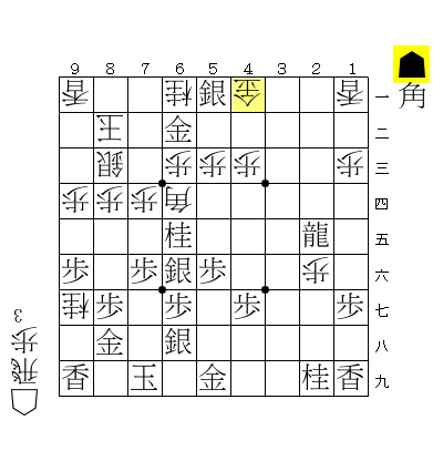 ☗4六龍☖同玉☗4一龍☖3七玉☗3八香☖同玉☗3九銀打☖同玉☗5七角打☖2八玉☗4八龍☖3八飛打☗同飛☖同玉☗3九飛打☖2八玉☗1九銀打☖1七玉☗2九桂打☖1六玉☗1七歩打☖1五玉☗3五飛☖2五桂打☗2四馬☖同玉☗3二飛成☖1五玉☗1六歩☖2六玉☗1八桂打☖2七玉☗2八歩打☖1六玉☗3六龍☖1五玉☗2六龍☖1四玉☗1六龍☖1五香打☗2六桂 41手詰