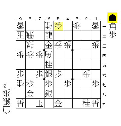 ☗5七龍☖同銀不成☗6八銀打☖同銀不成☗7七金打☖同銀不成☗6六金打☖同銀成☗5七金打☖7七玉☗6六馬☖8七玉☗8八銀打☖9六玉☗8七角打☖同成香☗同銀☖同玉☗8八金打☖9六玉☗8七銀打☖9五玉☗9六香打 23手詰