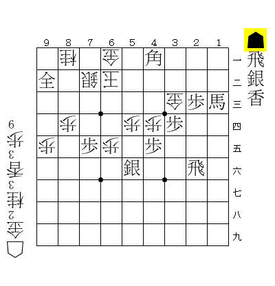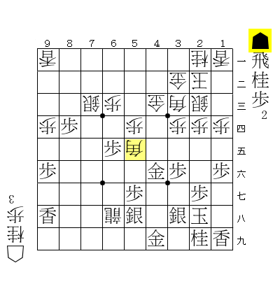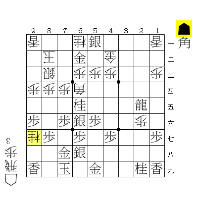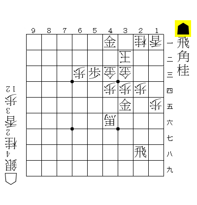 ☗2八香☖同銀成☗3六金打☖3四玉☗3三桂成☖同飛☗同成銀☖同玉☗4三飛打☖3二玉☗4一角成☖2一玉☗2三飛成☖2二歩打☗1二香成 15手詰