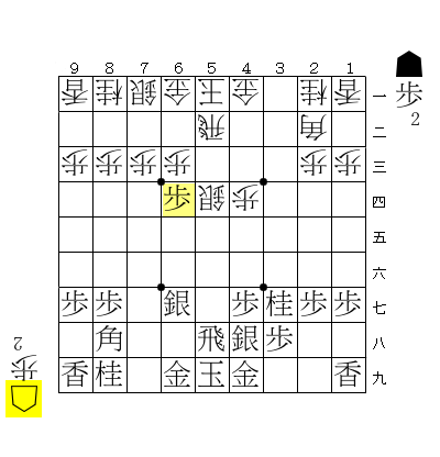 1五歩 同歩 2四歩 同歩 1五香 同香 2四飛 2三歩 1四飛