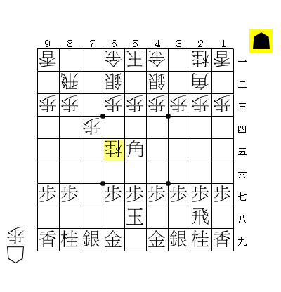 なのでさかのぼって8六歩には7七金 8七歩成 8七同金でどうか、というものでしたが。しかし4四角は全く見えておらず終わってしまいました。 角道を開け三間飛車から3七の地点を狙う(後手番目線で先手目線ですと7三の地点ですが)