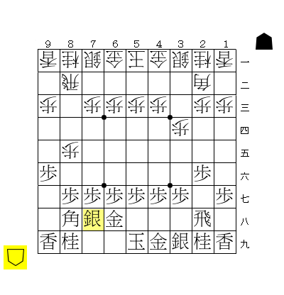 これにより7六歩、7五歩から後手が一方的にやられることは防げるような、そんな気がする。2手目 4二銀